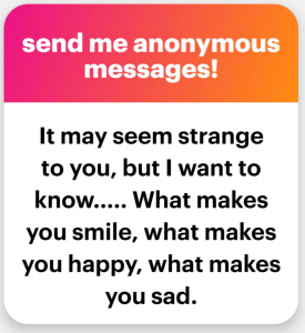 I smile when James gives me affection and tells me he loves me. What makes me happy is to see my family and friends happy and enjoying life. What makes me sad is when the ones we love are taken from us to soon and we haven’t had a chance to tell them how much we love and appreciate them. Ox Ava